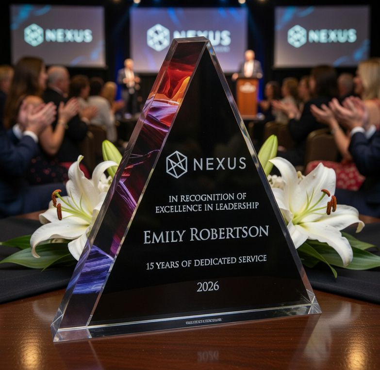 Whether you’re honoring leadership, years of service, sales excellence, or team milestones, the Prism Triangle delivers a modern, high-impact look that feels premium and memorable. Its sleek lines and eye-catching prism edge make it far more distinctive than traditional awards. Key Highlights: