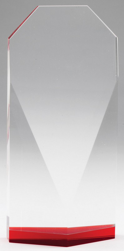 Gonzo journalist Hunter S. Thompson wrote, “Good news is rare these days, and every glittering ounce of it should be cherished… like a priceless diamond.” You can now provide such good news by presenting our Crystal Diamond Face with Red Base award to a deserving individual in your corporation, educational institute, or service association. Crafted from nearly 2” of clear crystal, this fabulous free standing accolade has a crimson base which gives the award’s many facets a red tint. Beveled edges surround the diamond shaped face. Our graphic artists can engrave up to 6 lines of text on the diamond face, and they will also include any graphic arts you would wish on the award. All engraving is free. Buy two awards and we will include free shipping too! Available in two sizes, our Crystal Diamond Face with Red Base will make a priceless award that recipients will always cherish. Order one now!