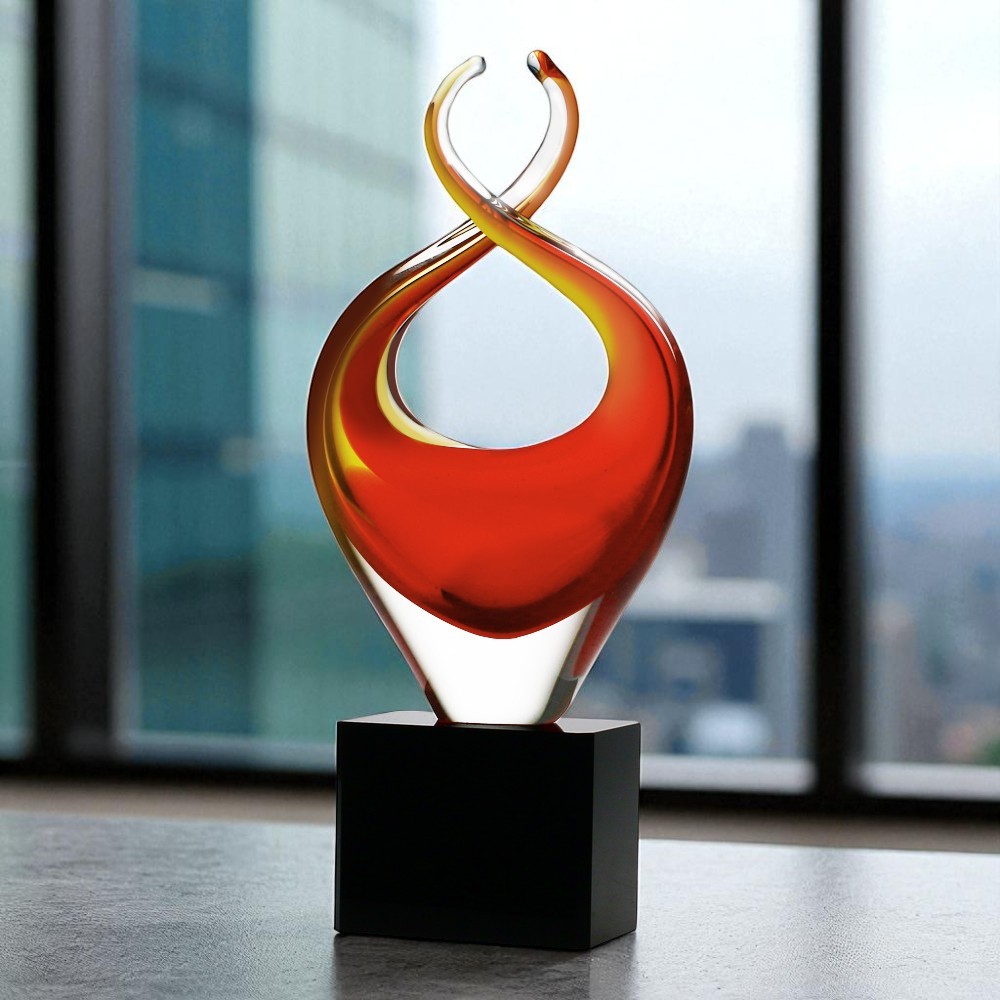 Ignite the flames of recognition with the Twisted Fire Art Glass Award – a scorching masterpiece that’s hotter than a dragon’s breath and cooler than a secret agent’s shades! Picture this: a swirling vortex of molten passion, where fiery reds and sun-kissed yellows twist and twirl like a tango between lava and lightning. Perched proudly on a sleek black glass base, this 5.5″ x 12.25″ behemoth weighs in at a hefty 5.2 lbs, ready to anchor your desk or shelf like the trophy equivalent of a superhero’s cape.Handcrafted by artisans who clearly have a pact with the gods of glass, each award is a one-of-a-kind inferno. Expect playful air bubbles dancing within, like tiny fireworks frozen in time, and subtle color variations that make every piece as unique as your grandma’s secret chili recipe. It’s not just an award; it’s a statement – perfect for honoring the office pyromaniac who sparked that killer project, the sales wizard who set records ablaze, or the volunteer who fanned the flames of community spirit.And the best part? Free engraving lets you etch in eternal glory – “World’s Best Boss” or “Flame Master Extraordinaire” – all tucked into a snazzy gift box for that wow-factor presentation. At just $139.90, this G2424 art glass award isn’t your run-of-the-mill plaque; it’s a blazing beacon of achievement that’ll have recipients feeling like they’ve conquered Mount Doom. Whether for corporate conquests, sports triumphs, or just because someone deserves to feel the burn of success, the Twisted Fire Art Glass Award turns ordinary accolades into epic tales of triumph. Don’t let your heroes go unrecognized – fan those flames today and watch motivation soar!