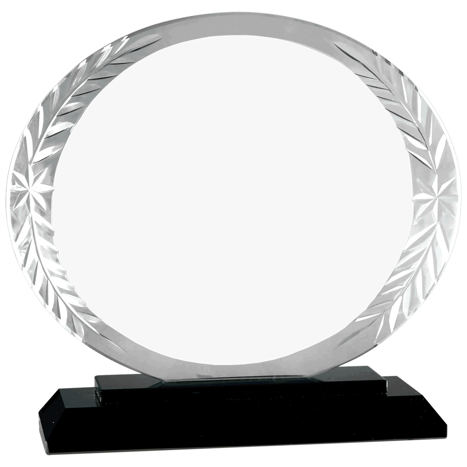 Our Oval Accent Glass Award makes a terrific tribute to donors, educators, or employees. The award has a transparent plate of glass as an engraving area. Its elliptical shape is bordered by a laurel leaf design and the multifaceted pattern catches the light. The glass plate gives ample room for organizational logos, business emblems, or school mascots, and our graphics arts department can duplicate any image by using our laser engraver. Our artists will also place up to five lines of text on the plate. All engraving is included in the price of the piece, and prices start at $37.90. Available in two sizes (ACG41 = 6.25″ x 5.75″ and ACG43 = 7.75″ x 7″), we are sure one of the sizes will fit your needs. Our Oval Accent Glass Award will be proudly be displayed by the lucky recipients for years to come. Place your order today!