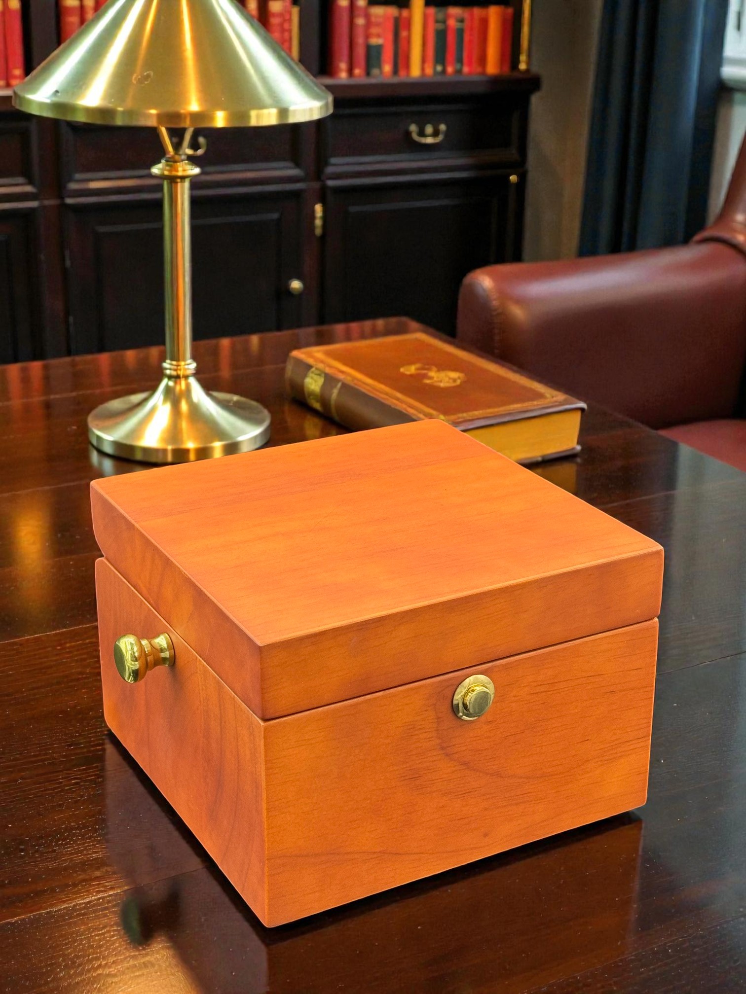 A captain’s clock has long been the favored timepiece of nautical enthusiasts. Sailors, boaters, and oceanic buffs from far and wide will be delighted with this hand rubbed mahogany captain’s clock with brass accents. Once this BC73 Captain’s clock is opened, a stunning round clock face is revealed on a slight angle to assure a great view of the time. The emblem that is pictured in the photo on the round brass engraving plate is an example only. It actually come blank for you to let us know what personalized logo or message you want our design team to place there for free. This item measures 5.5″ by 5.5″ and because it is over $100 it also qualifies for free shipping.