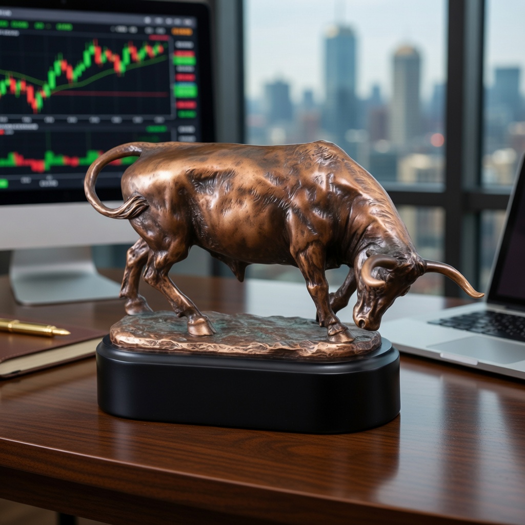 Command attention with this powerful Bull Statue, a striking symbol of strength, determination, and unstoppable drive. Featuring a finely detailed bronze electroplated resin bull with its head lowered and horns ready to charge, this impressive piece captures raw power and forward momentum in stunning detail.Mounted on a sleek black base with a generous engraving plate, this 8″ x 6″ statue (weighing 3.6 lbs) makes a bold statement on any desk, shelf, or display case. Whether you’re recognizing top performers in sales, finance, or business leadership, or honoring perseverance and market success, the Bull Statue delivers a memorable and prestigious award.Perfect for corporate recognition programs, stock market achievements, motivational gifts, or executive decor, this versatile piece combines premium craftsmanship with meaningful symbolism. The bronze finish adds a rich, professional look that complements any office or home setting. Key Features: